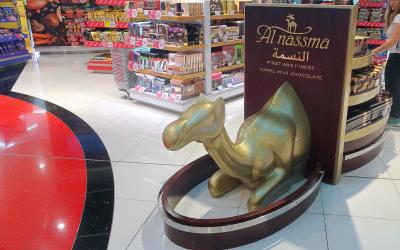 エミレーツ航空でドバイでのトランジットで,エリアAとCの免税店に行きました。メイン空港相応の規模と品揃えがあり,種別ごとの陳列も見やすいように思いました。今回は夏場だったので購入しませんでしたが,空港で買えるドバイ土産としては,世界で唯一ラクダのミルクを使ったチョコレートのアルナスマ(Al-Nassma)が人気があり,ラクダの形をしたものもあってお手頃だと思います。