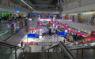 エミレーツ航空はターミナル3。ガイドブックでは,セルフチェックイン方式で,自分でスーツケースにタグを付けるということでしたが,エミレーツ航空のカウンターでは有人の受付だけでした。DEMELがターミナル3にもある(ネット情報ではGゲート)とのことだったので,行ってみようかと思いましたが,利用するDゲートからは移動距離も長く,断念しました。免税店等はそれほど充実しているという感じはありませんでした。また,セキュリティチェックがゲート毎に分かれており,そこを通過するとお店はなく,自販機くらいしかありませんでした。