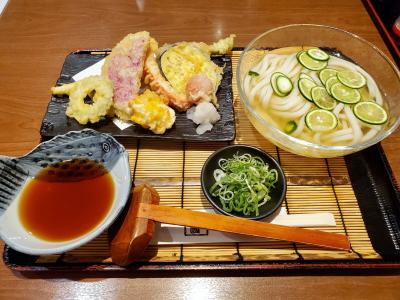 今回は,家内が親子丼を,私が季節限定の「すだち薫るひやひやうどん 夏野菜天婦羅盛り付き」をいただきました。後者は,いりこの利いたさっぱりしたお出汁の冷やしうどんで,すだちの輪切りがトッピングされ,涼やかな見た目と喉ごし。天婦羅は,ゴーヤ,とうもろこし,ミニトマト,パプリカ,茄子,紅芯大根,アスパラガスといった夏野菜。カラッと揚がっていてなかなか結構でした。- 旅行時期