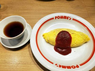 三宮オーパ2のレストラン街(9階)。以前,ポムの樹といっていたオムライス専門店。入店時に手指消毒剤の使用を勧められ,着席。コロナ対策のため,使用しない席を設けてソーシャルディスタンスに配慮されています。注文は,今流行のタッチパネル。ディスプレイには,見本画像が表示されないので,紙のメニューで出来上がりを見ながらチョイス。今回は,サラダとドリンク,味噌スープとのセットでいただきました。