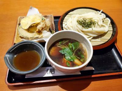 今回は,季節限定の「合鴨のつけうどんと秋野菜の天ぷら盛り」(税別1,080円)をいただきました。鴨せいろのざるうどん版で,つけ汁には,鴨,焼きねぎ,なす,しいたけなどが入り,天婦羅は,舞茸,さつまいも,南瓜,ししとう。鴨せいろ好きの私には絶好のメニュー。美味しくいただきました。- 旅行時期