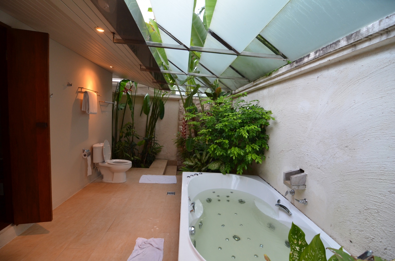 セミ・オープンのバスルームにはさまざまな「お客」が訪れます。- 旅行時期