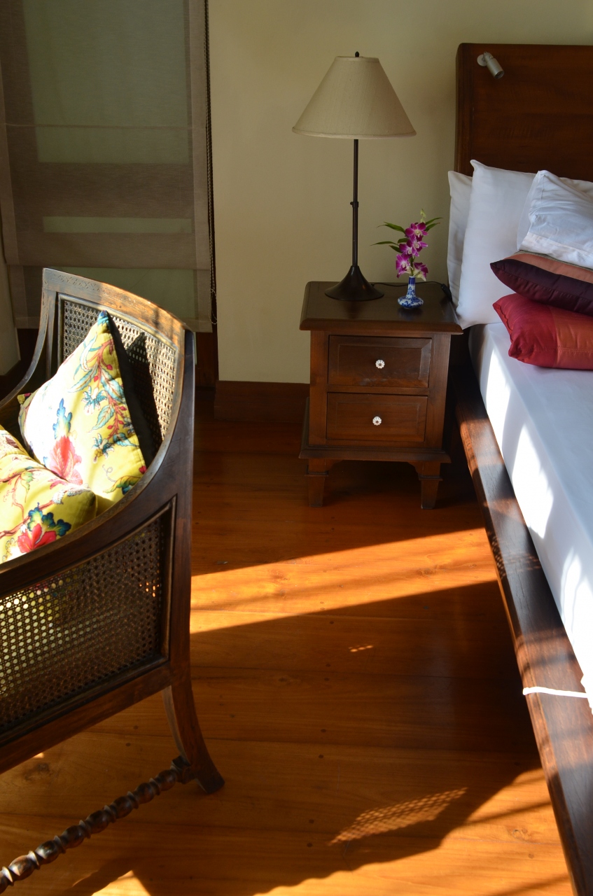 エアコンディショニングされた室内は機能的ですが、水回りは一切なく、屋外へ出る必要があります。涼しい季節は気持ち良いですが、暑い時期はちょっと大変かも。もちろん、相応しいプールつきなので、いつでもドボンと涼めますが・・・何れにしろ、壁にて完全に隔離されたヴィラなので、屋外で暮らす時間は長くなります。場合によっては、毎食ヴィラ内で、ヴィラBBQまでも・・・