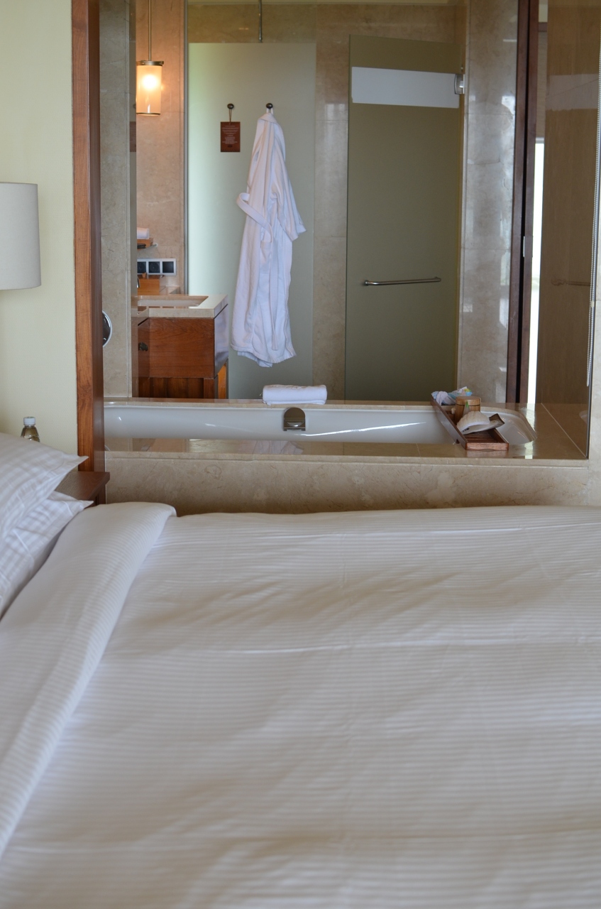 部屋そのものはオープンなバスルームと相まって広く快適で、居心地満点です。