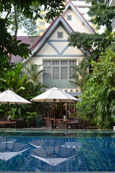 スクンビットのソイ奥にひっそりたたずむ、旧い邸宅を改装したホテルです。