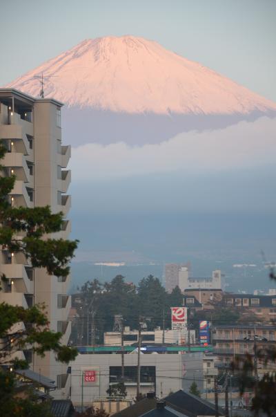 富士山の絶景が窓越しに正面に見えますが、他の建物が目障りではある。
