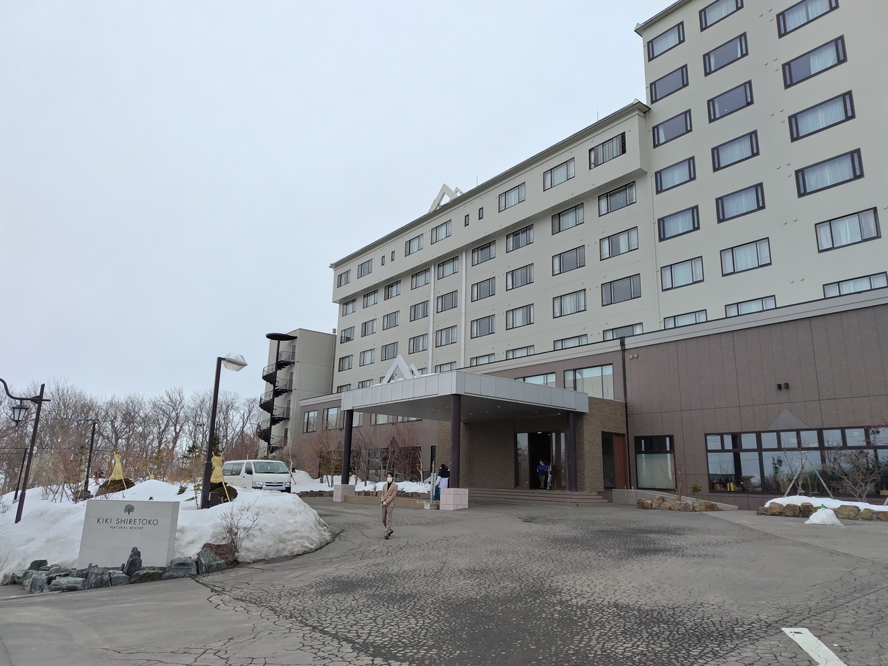 近くにある系列の知床夕陽のあたる家に泊まり、翌朝女満別空港へ向かうバスに乗るため、ロビーでバスを待ちました。朝のバスはウトロバスターミナルだけでなく、キキ知床ナチュラルリゾートの前からも出ます。バス待ちでロビーにいただけでも、ホテルの豪華さと居心地のよさを感じました。高台にあるので、ウトロの中心街からは離れています。