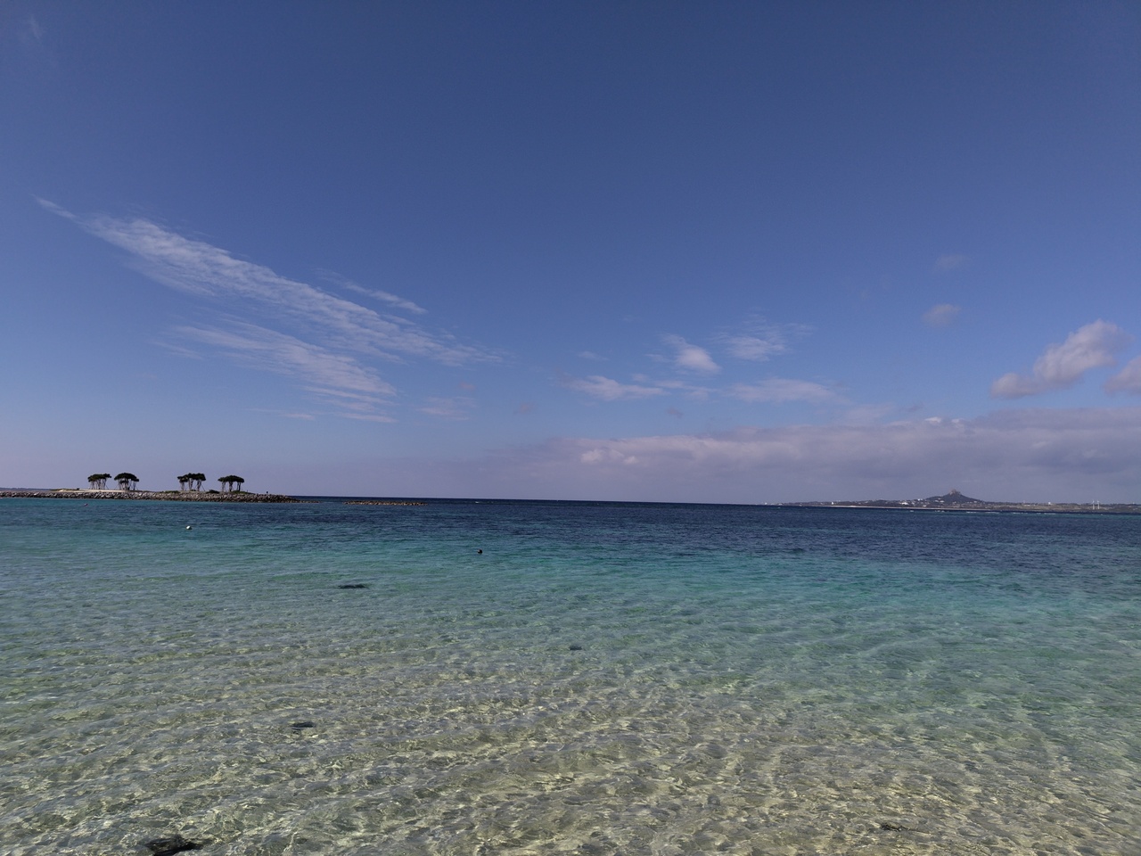 想像以上に、きれいな海でした。本島と結ばれた古宇利大橋から島に渡ると、島の駅があり、隣接して古宇利ビーチがあります。チグヌ浜も近いです。島の反対側には、ハートロックやトケイ浜があり、どこもエメラルドグリーンの海が広がっています。