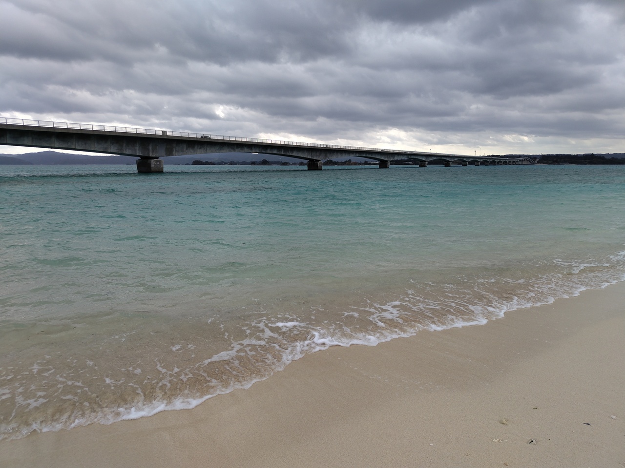 アンチ浜は、瀬底大橋のたもとにあり、近くまでクルマで行けます。カフェやマリンアクティビティーのショップもあり、夏は賑わっているんだろなぁと思いました。ビーチは広く、波も穏やかで、のんびりできそうです。