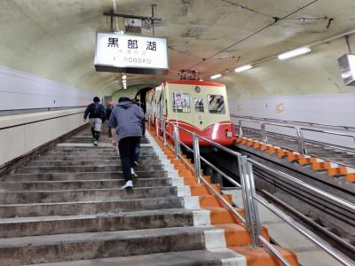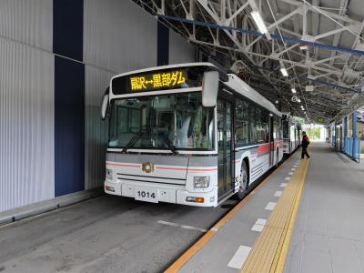 以前は、立山トンネルトロリーバスと同様に、トロリーバスでしたが、今は急速充電された電気バスになりました。全線トンネルなので眺望はありませんが、途中破砕帯を通過するときに、案内放送があり窓からその位置を見ることができます。