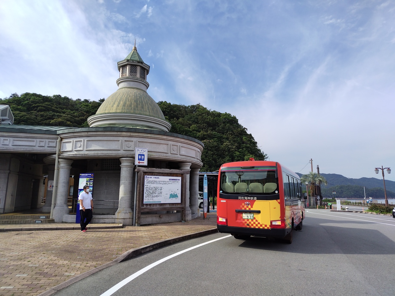 阿佐海岸鉄道のDMVを追って、道の駅宍喰温泉まで来ました。ここは起終点になりますが、それほど長く停車しているわけではなく、すぐに折り返していきました。DMVで訪れる人、ここから乗る人はいませんでした。