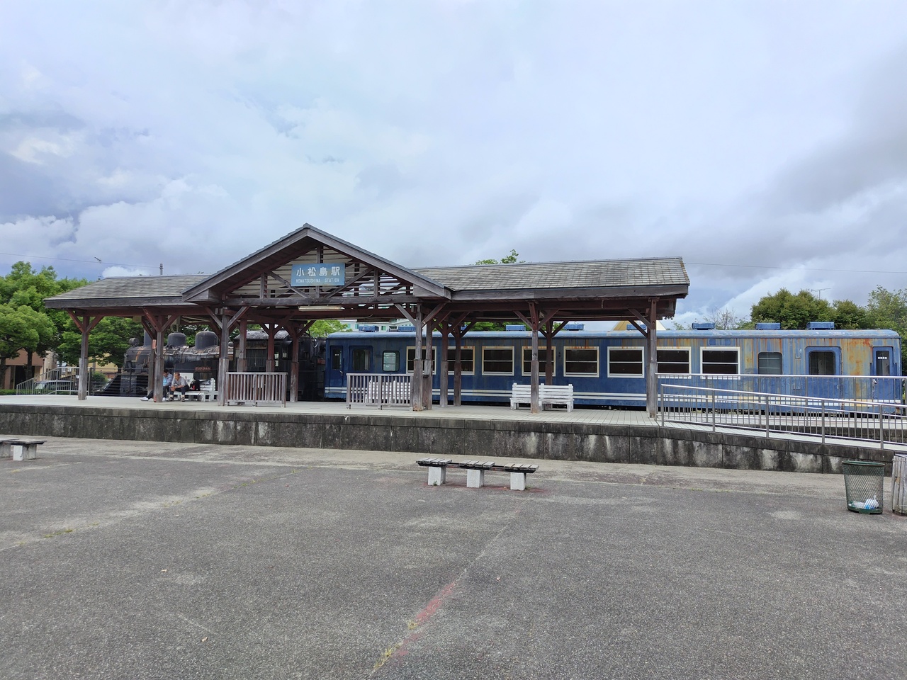 旧小松島港線の廃線跡にある公園です。廃線跡の面影は散策路に線路が描かれているのと、蒸気機関車と客車が置いてあるくらいです。置いてある鉄道車両は傷みがはげしく、保存というよりは放置に近いです。公園には巨大なたぬきの像もありました。