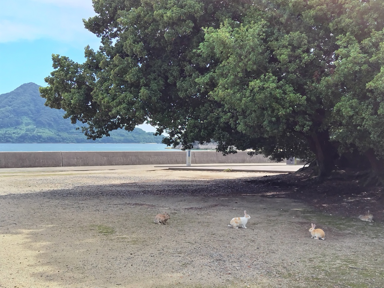 大久野島はうさぎで有名です。港を降りたらすぐにうさぎたちがいて、昼寝していたり、寄ってきたり。島を散策してるとそこら中にうさぎたちがのんびり過ごしています。海水浴場やハイキングコースもあり、ここで人間ものんびりしたいです。