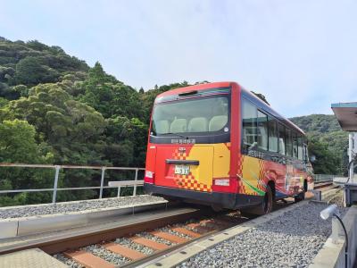 バスと鉄道が一緒になったDMVは世界初ということですが、そもそも、国道が並走している鉄道をマイクロバスが走る必要があるのか…。マイクロバスはお客さんを積まずに鉄道車輪を積んで重そうでした。甲浦駅では間近で変身が見られました。
