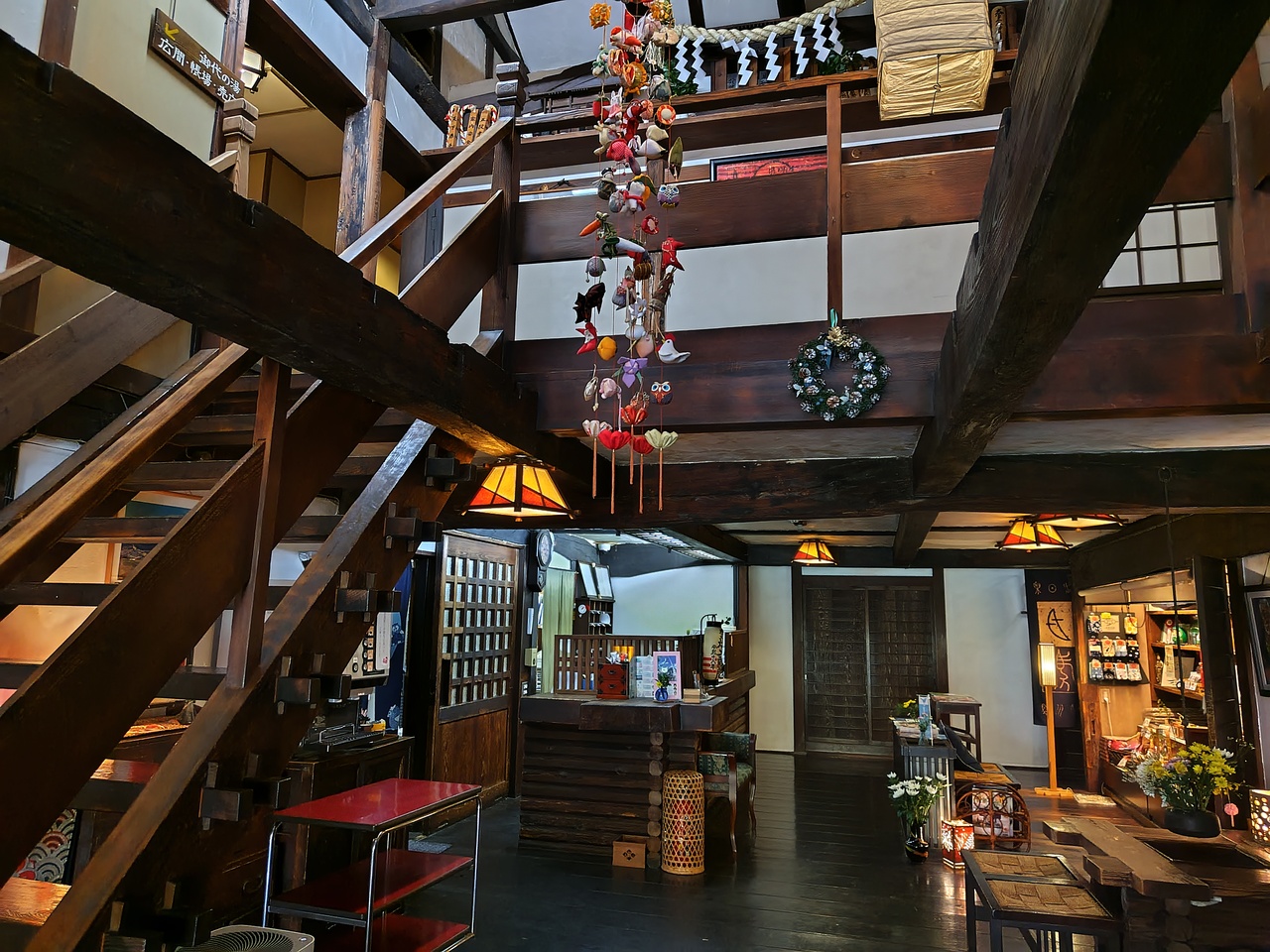 関温泉スキー場の目の前、市営バス「めぐりん」関温泉バス停の目の前にある温泉旅館です。玄関や食堂は古さを感じますが、奥に入ると廊下や踊り場に飾りもあり、いい旅館という感じがあります。お部屋は広く、視界がぬけていて遠くまで眺めることができます。温泉は源泉かけ流しで鉄分豊富、あたたまります。またお風呂からの眺めもいいです。