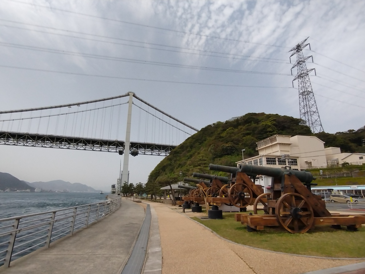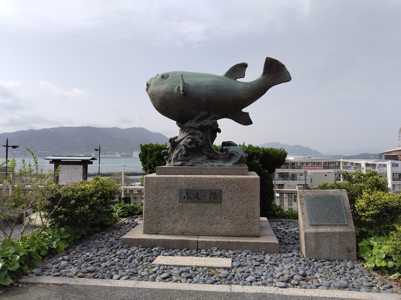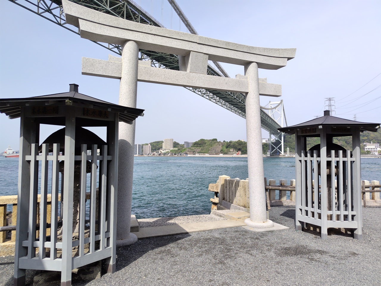 レンタサイクルで訪れました。下関駅からは自転車道が整備されているところが多く、走りやすかったです。関門海峡の対岸の門司はすぐそこで、鳥居の向こうには門司の街が見えました。境内は大きなふぐの像がありました。