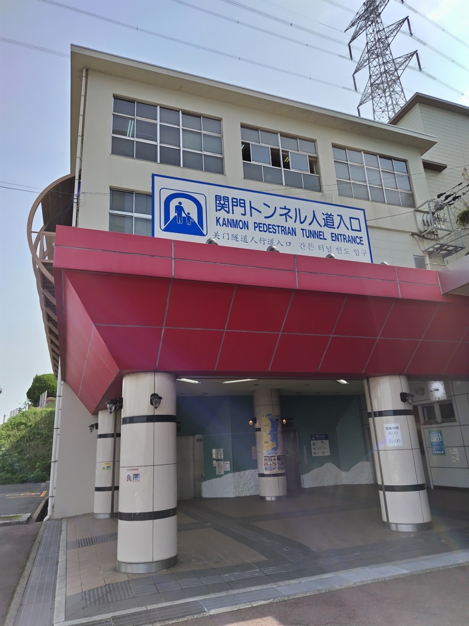 下関からレンタサイクルで行きました。関門トンネル人道は自転車も通行できます。自転車の通行料金は20円です。通行料金は下関の出口で箱に入れます。トンネル内は、自転車は人と同じようにおして歩いていきます。