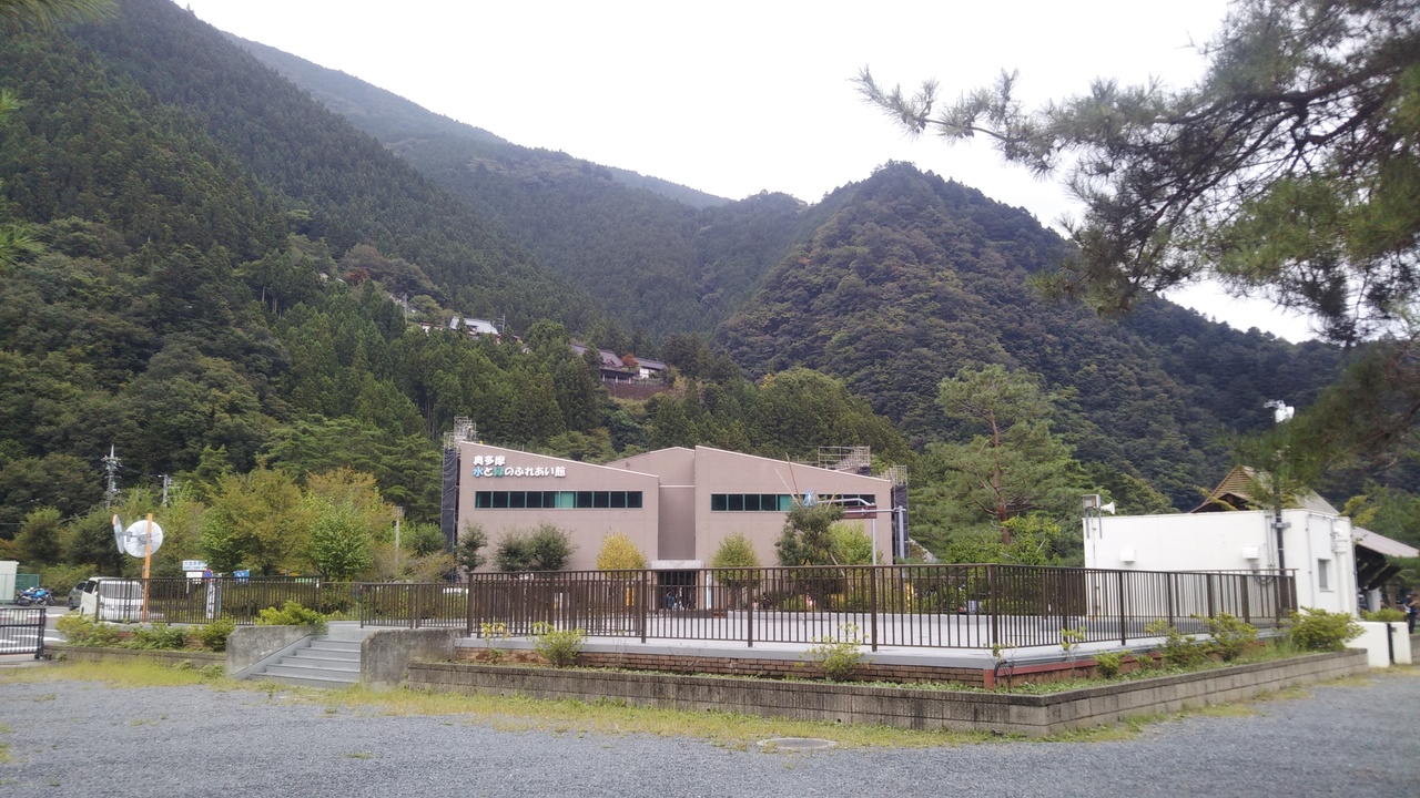 JR奥多摩駅からもずいぶん先にあります。わたしはクルマで行きました。小河内ダムに展望台があり、そのすぐ隣に奥多摩水と緑のふれあい館があります。駐車場の他に、屋外にあづま屋やベンチ、自動販売機もあります。