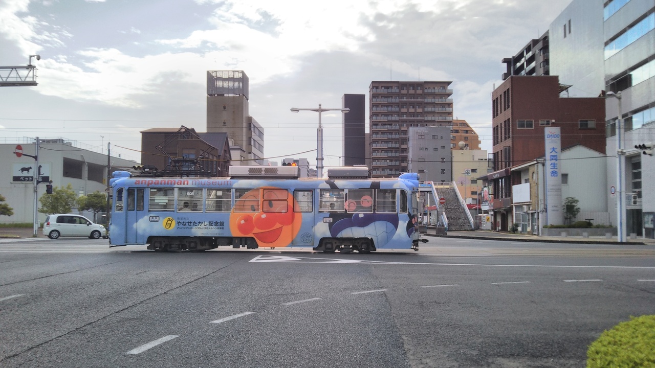 高知の街中を路面電車が走っています。高知駅から中心街のはりまや橋や高知城へ伸びています。車両は、吊りかけモーターの渋い音がするちょっとレトロなタイプが多いです。アンパンマンのラッピングがされた車両も走っています。