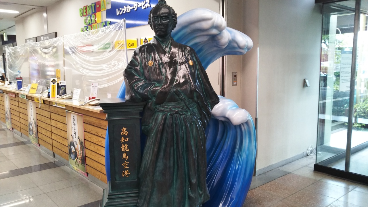 高知空港は、空港連絡リムジンバスが高速道路を経由しているためか、高知の駅や中心街から以外に近いです。空港では大きなお土産屋がひとつあります。空港の周囲には、近くに住宅地もあり、松山空港のときと同じように驚きました。