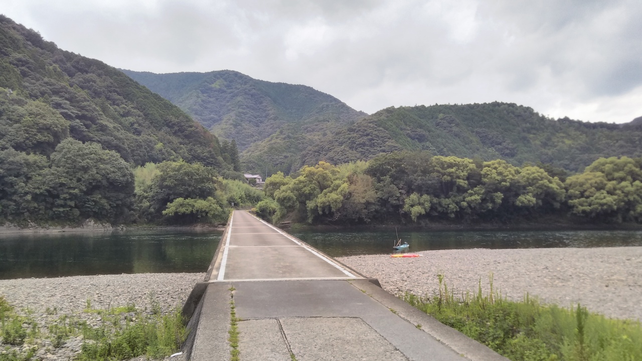 四万十市の四万十川下流域にかかる県道346号線の橋です。足摺岬から四万十川へ向かう途中にありました。橋の色が赤茶色です。四万十川は川幅が広く、またまわりには何もないので、橋の赤茶色がとても目立ちます。