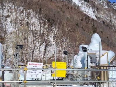 黒岳へスキーに訪れ、帰りに層雲峡氷瀑祭りの会場に寄ってみました。氷瀑祭りは夜だけで、昼間はやっていないようです。道路から眺めましたが、暖冬の影響を受けているのかなと感じました。駐車場はすぐそばにあります。