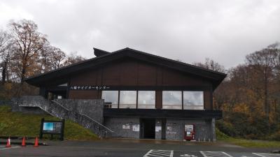 アスピーテラインの秋田県側にある八幡平ビジターセンターら、目の前に大沼が広がり、眺めがいいです。ビジターセンターには駐車場があり、そこから散策路があります。天気が悪かったのですが、この季節は草紅葉がきれいでした。