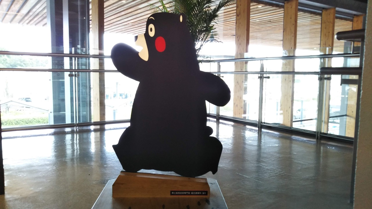 熊本空港にはくまモンがたくさんいます。わたしがいちばん気になるくまモンは、2階のトイレ前にいるくまモンです。くまモンが慌てて走っています。場所が場所だけに、くまモン間に合うかと心配になります。