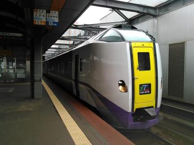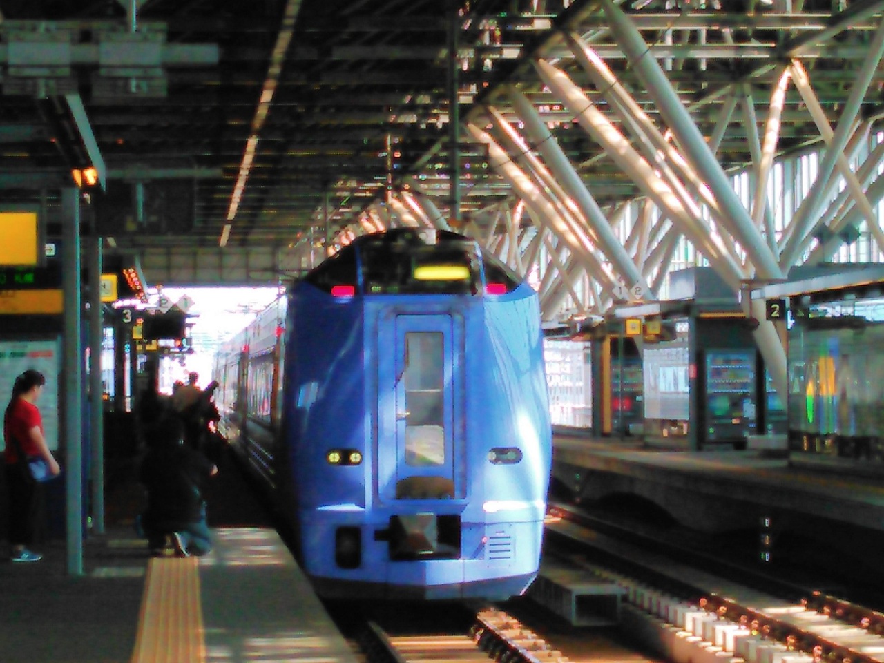 札幌と旭川を結ぶ特急です。以前は30おきに出ていましたが、最近は時間帯によっては1時間に1本です。都市間バスは本数が多く、値段が安いため、都市間バスを使う人が増えたのかもしれません。乗客はまばらでした。