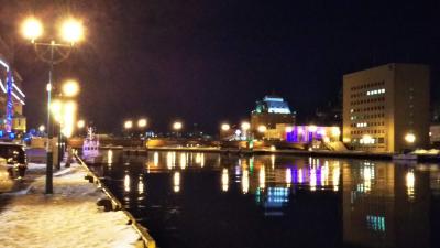 釧路駅に到着したのが日が沈んだ頃でした。ホテルに荷物を置いて釧路川沿いからフィッシャーマンズワーフを訪れましたが、すでに閉まっているように見えました。あとでホテルの人に聞くと、通りのところに入口があるようでしたが、わかりませんでした。