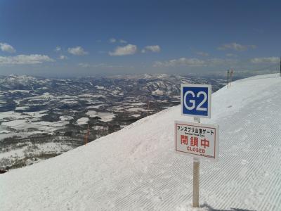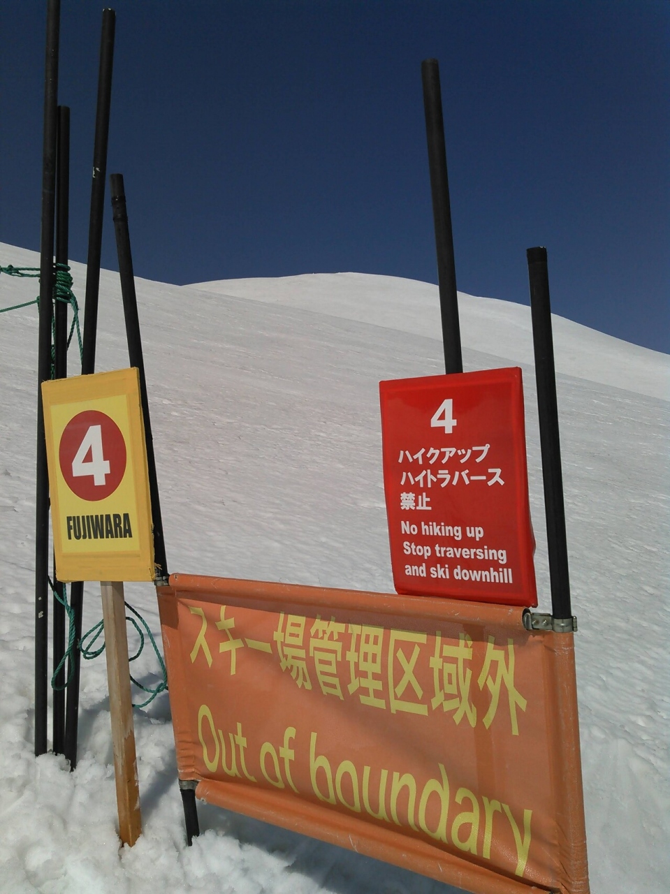 ニセコはスキー場外に出られるゲートがいくつかあります。そのひとつ、花園エリアにはG4ゲートがあり、ここは比較的斜面が広く滑りやすいです。谷に向かってやや右側沿いに下りていけばコースに戻ることができます。