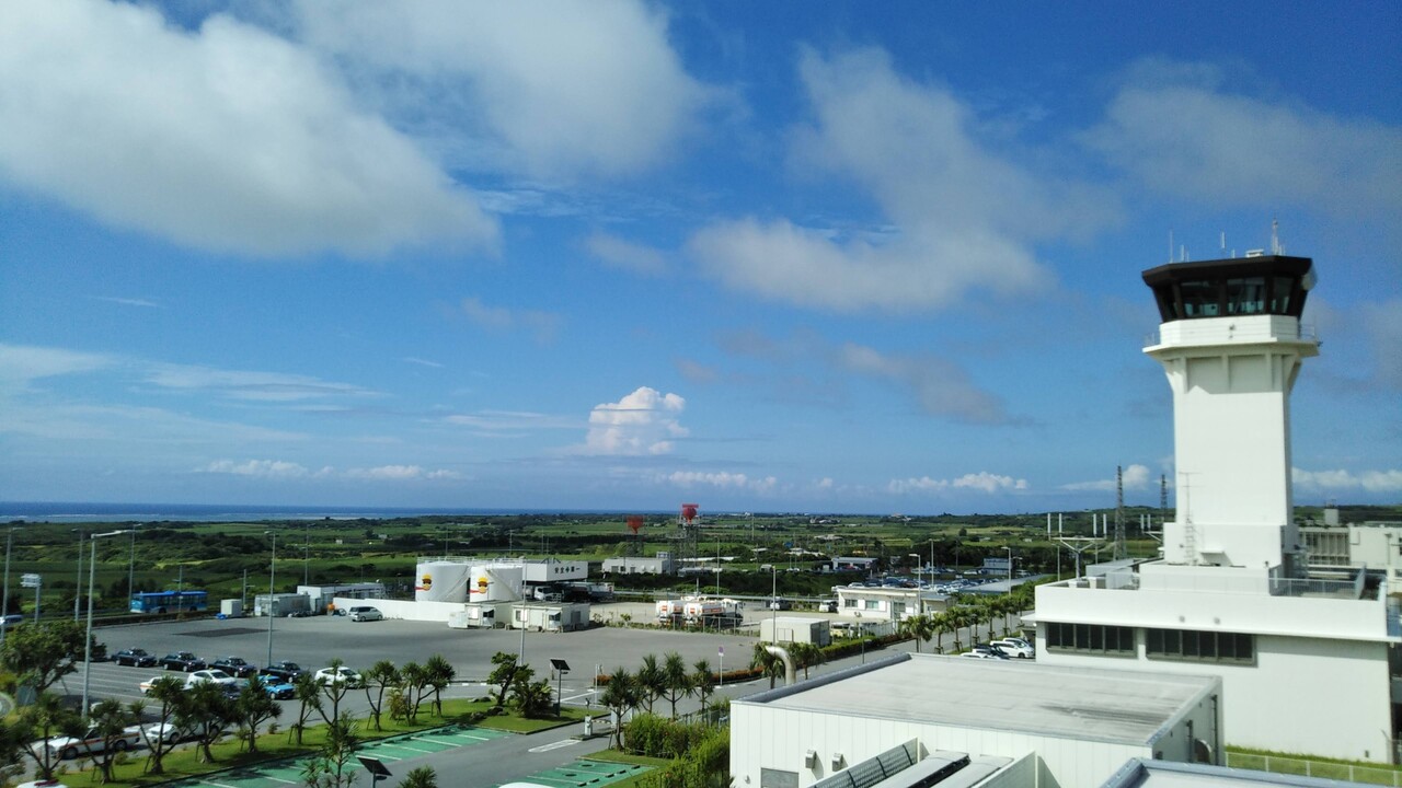 離島の空港ですが、空港内に八重垣そばのお店など飲食店やお土産物屋も充実しています。デッキからは石垣島の海を眺めることができます。JTA(日本トランスオーシャン)のジンベイザメジェットも見ることができました。