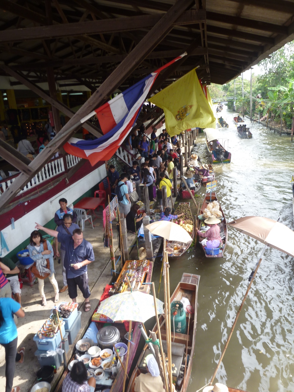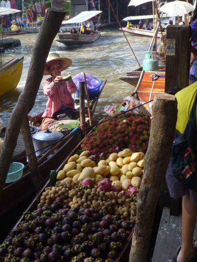 朝7:30頃にバンコクを出発、1時間ほどバンに揺られ途中ココナッツファームに寄りトイレ休憩。さらに1時間ほどバンに乗車して到着。ダムヌンサドアク水上市場でスピードボートに乗船し20分ほど見学、そののち市場自由散策という流れでした。20年ほど前にも来たことがあったのですがその時にはスピードボートは有りませんでした。雰囲気は昔のままで舟の上で売っている土産物も食べ物も昔とあまり変わっていませんでしたが、食べ物もお土産もバンコク市内よりやや高めでした。舟に乗りながらでも、降りてからでもビデオ、写真の撮影ポイントは沢山あるので退屈はしませんでした。- 旅行時期