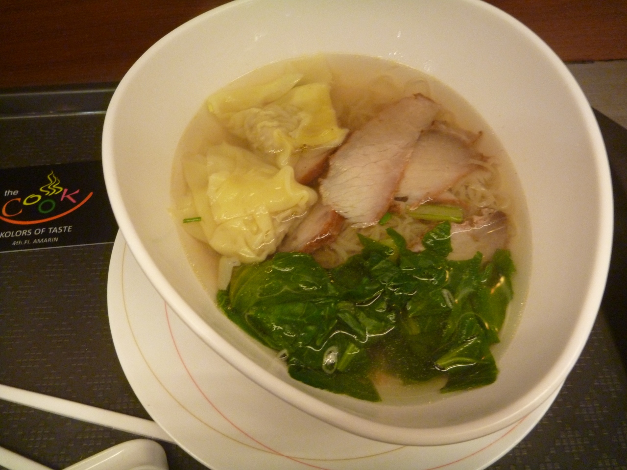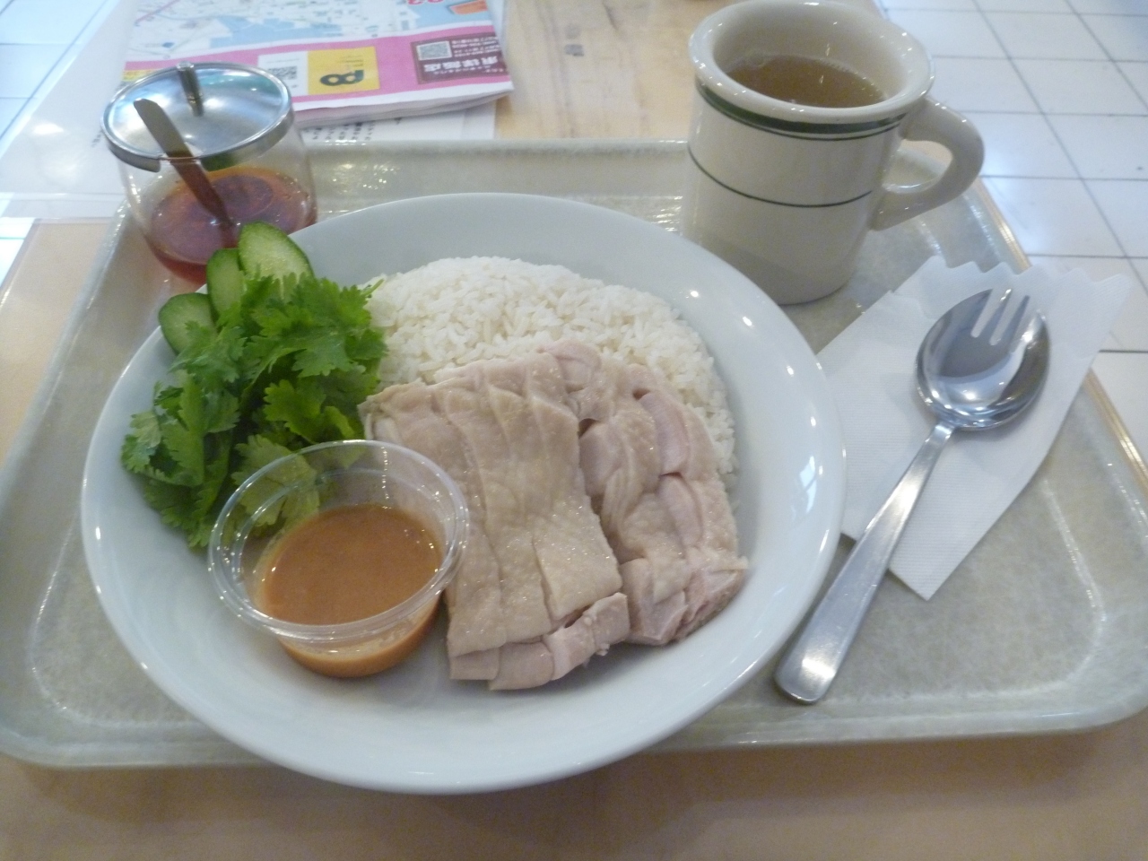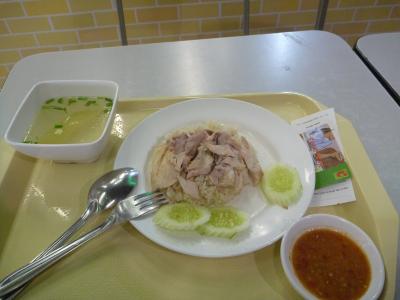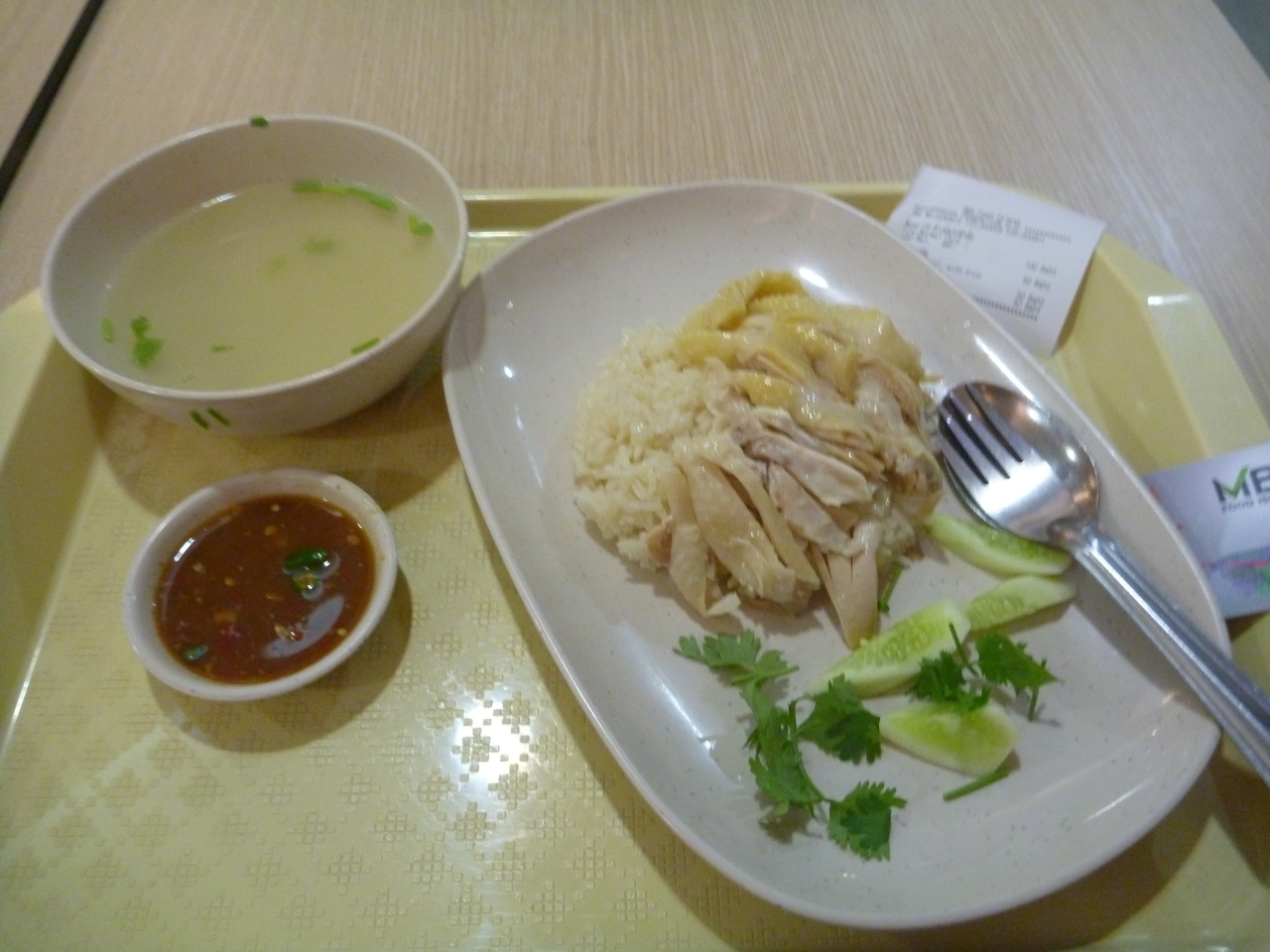 バンコクでの食事はフードコートが財布にも優しく待ち時間なしで、現地の食事を楽しめます。当日はバーミーナムを食べるつもりでクーポンをチャージしてもらい、麺類のブース(他のブースとは違い、島状の部分)へ向かったのですが、ガスコンロの修理中でした。他の麺類(いわゆるヌードルスープ)を探してNoodle Soup With Fish Ballというのを注文したところ、驚きのうまさでした。翌日はカオマンガイを食べました。こちらのカオマンガイはよく食べに来るのですが。他のフードコートが付け合わせがキュウリだけなのに対して、パクチーも付いているのがお気に入りなのですが、甘辛のたれが、たまにとても辛いことがあり、汗だくで食べることになります。