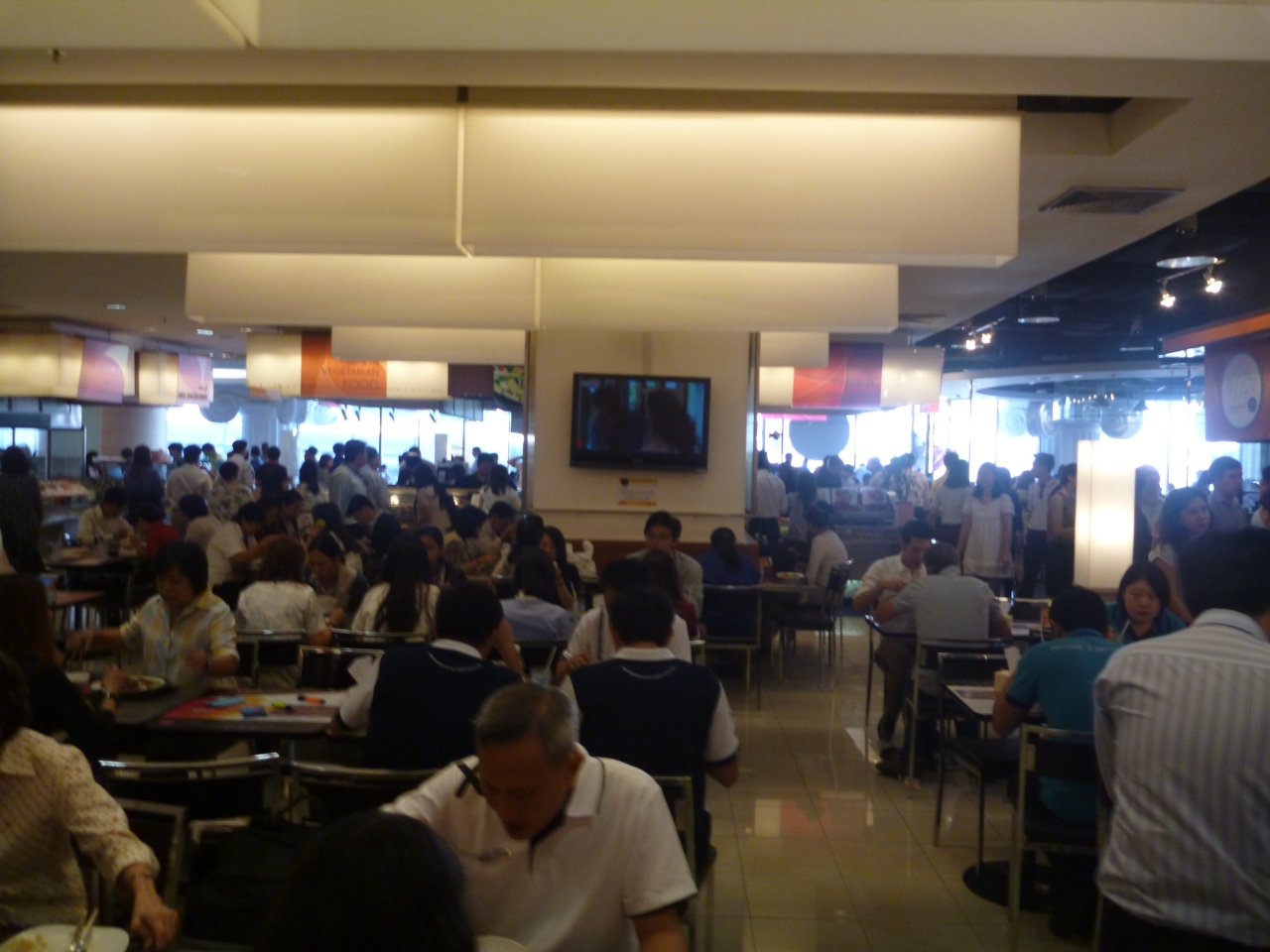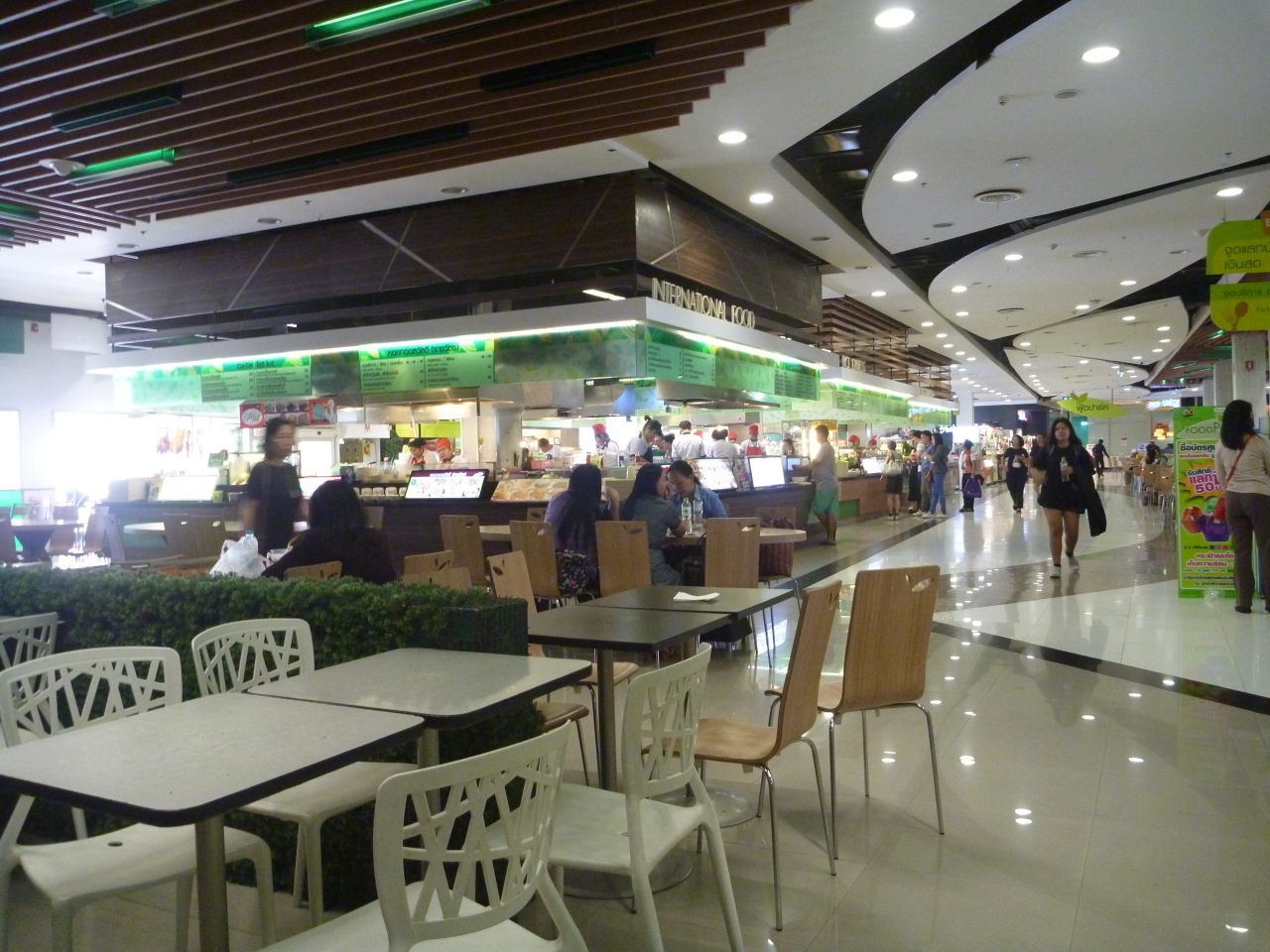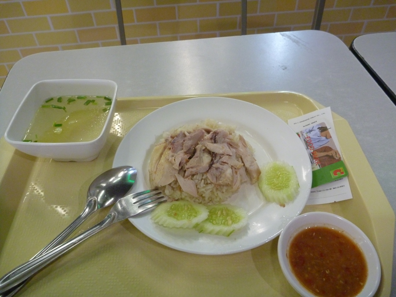 バンコクに数か所ある(たぶん6~7か所)スーパーマーケットで日用品、食品、化粧品、衣料品、電化製品はもとより、タイ土産もどこよりも安く購入できます。買い物のついでについ寄ってしまうのがフードコートです。昼食時にもあまり混雑せず、座席も多く、座席間隔も広く取ってあります。値段は他のフードコートと変わりませんが、ここのフードコートのカオマンガイはタレが甘めで、スープも大きめの冬瓜がごろっと入っていて、器も大きめでお得感があります。