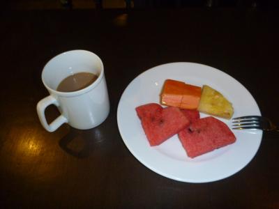 チェックインしたのが19日深夜というか20日の午前0時過ぎでした、帰国便が24日の早朝だったのでチェックインのついでに24日の午前4時にウェイクアップコールとチェックアウトの時刻では朝食が取れないので、breakfast boxを予約して部屋に戻り就寝いたしました。約3時間後に部屋の電話が鳴りました・・なんと初日にウェイクアップコールが鳴り響きました。ご丁寧なことに約5分後にもう1度ウェイクアップコールが・・・電話線を抜きました。結局、帰国当日はウェイクアップコールはありませんでした。