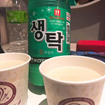 いっつも思うけど、マッコリ安いよねーこれで100円とかやで?!初めての...