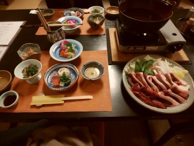 外観は結構年季が入っていて大丈夫?って感じですが大丈夫です。客室や館内は古びた感じがですが、浴室は露天・内風呂共にキレイに改装されており、泉質もとても素晴らしいです。料理のボタン鍋は甘くてかなり美味しく、その他の料理もどれも美味しかったです。骨酒もいい感じに魚のうまみが染み出ていました。