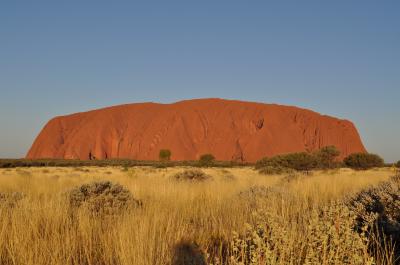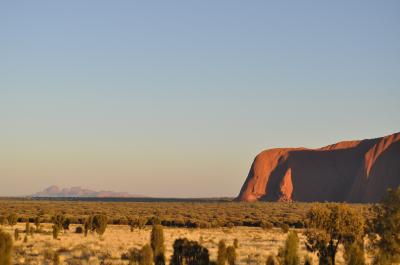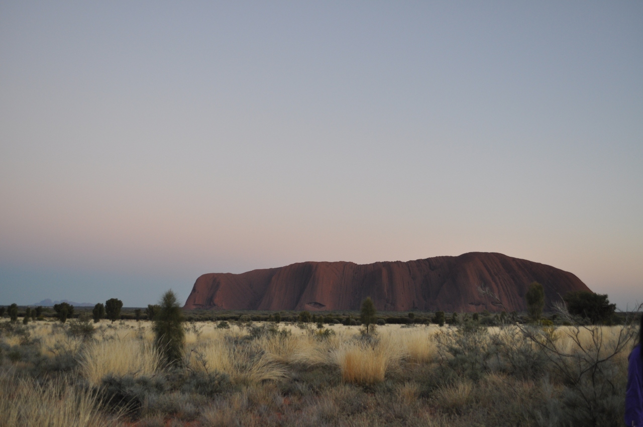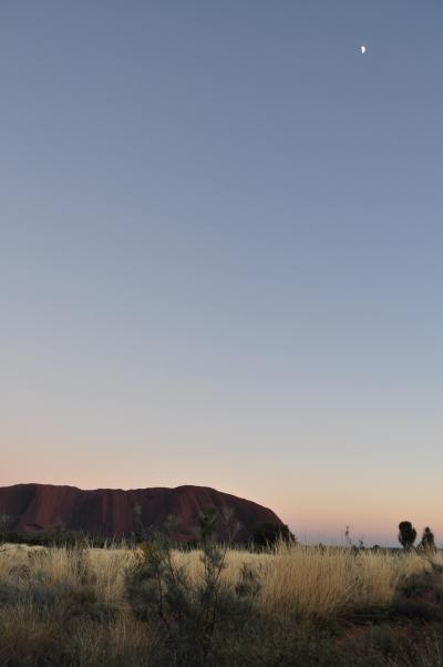6時前に宿を出て6時30過ぎに現地着。既に結構な人が来ていました。ちょっと到着が遅かったですが、まだ月もでており徐々に色が変化するウルルはとてもキレイでした。遠くにカタジュタも見えました。夕日で真っ赤なウルルも良いですが、こちらも必見です。
