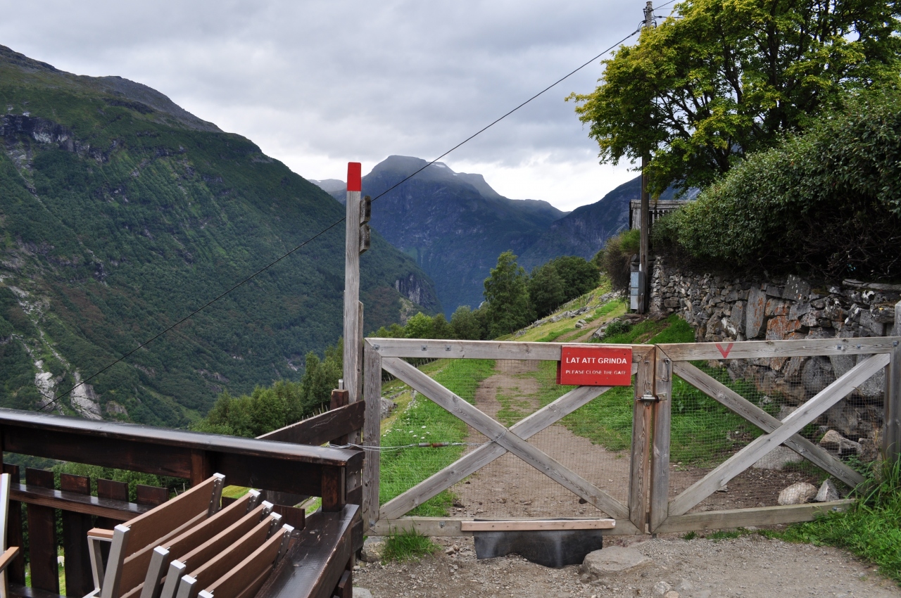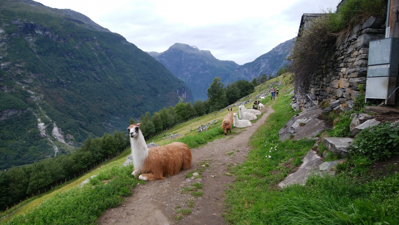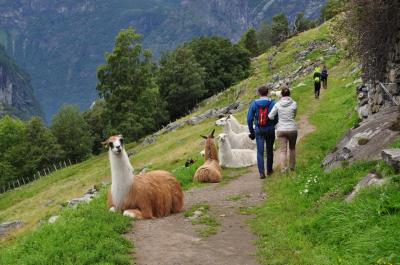 フィヨルドの中腹ぐらいを歩く散策路です。ガイランゲルの村や船着き場、ヘルシルト方面が綺麗に見れます。入口には5~6台位の駐車スペースとレストランがあります。何故か途中にヤギとアルパカがいます、景色よりもアルパカが何気にツボでした。途中は山道なので登山靴がお勧めです。車で入口まで行くには、船着き場からホテルユニオンを抜けて、フリーユーダールスユーヴェに行く途中で鋭角に左折します、かなり細い道路で対向できないところが多いですが、行き止まりなので交通量はほとんどありません。