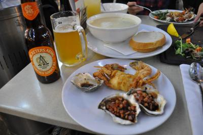 ダーリングハーバーのフェリー乗り場の近くにあるので、シドニー湾巡りの前後に便利な場所にあります。テラス席を利用しましたが、夏(現地では冬)の夜は薄手のフリースとダウンでちょうどでした、電気ストーブも近くに置いていました。カキやスープなど頂きましたが、好物のソフトシェルクラブがおいしかったです。