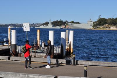 シドニーと言えばここでしょう。正直近くに行ってもこれといったものはありません。離れて見た方がキレイです。表面がタイル?みたいなもので、できていて「ふ~ん」って感じです。個人的には手前のオペラバーと裏手にある海軍基地がいい感じでした。