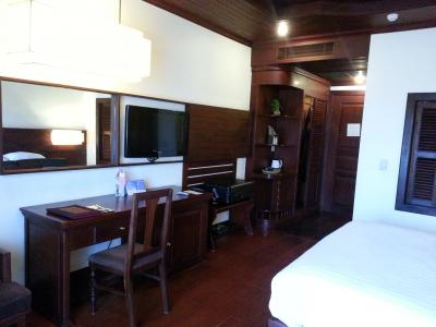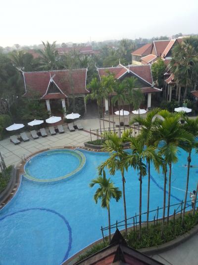 大型ホテルで何かと便利です。空港へは無料送迎をしてくれます。オールドマーケットまでは歩くと30分程度かかりました。トゥクトゥクでは3$でオールドマーケットまで行けます。あとは交渉次第でもっと安くなるかも。ホテルの部屋ですが、ブラウン調の落ち着いた空間でリラックスできます。朝食は焼きたてクレープが美味しかったです。