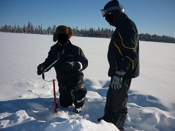 湖に穴を開けて魚釣り。・・・釣れませんでしたけどね。