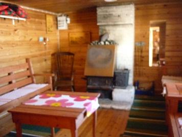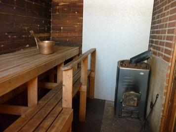 サウナ 着替え部屋。暖炉の火が暖かい♪