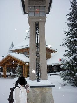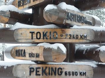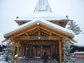 足元に北極圏の線が書いてある。残念ながら雪に埋もれて見えません・・・。