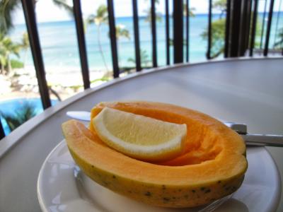 感動したのは、フレッシュなパパイヤやバナナがサービスで置いてあったこと。