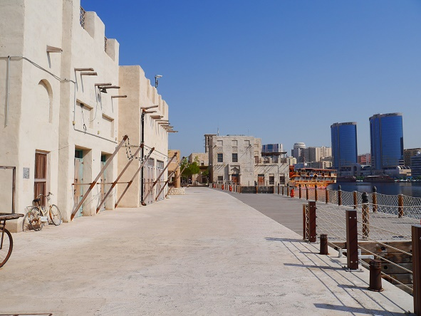 メトロ駅から少し距離はありますが、歩いて行きました。海風が暑苦しいけど古い街並みをみながらクリーク沿いをお散歩。初めて見る建造物にくぎ付けです。アラブの伝統的な建物。特徴的な「ウインド・タワー」と呼ばれる風の塔もあります。