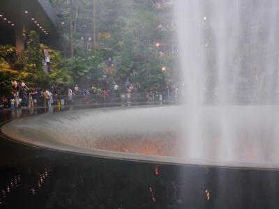 「魔法の庭園」をテーマに設計された「ジュエル」はシンガポール最大の屋内植物園。トランジットでも空港内で1日中過ごせそうです。ウォータフォールの下の方はどうなっているのかな?ってエスカレーターで降りていくこと・・・水しぶきが凄いのかしら?と手を差し出したら、透明な管の中に入っていたのね(笑)