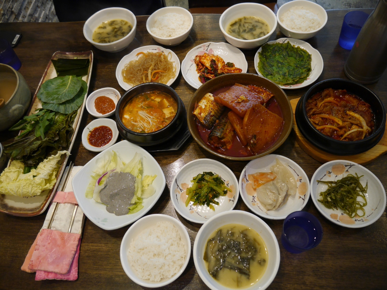 開店時間を気にせず利用できる24時間営業って神! 西面駅からすぐ!大通りに面しているレンガ作りの建物が目印のシゴルパッサン。入店と同時にバンチャンが並べられましたっ!メニューが出てこず、いつの間にかオーダーを取ったことになっています。田舎定食3人前が登場しました